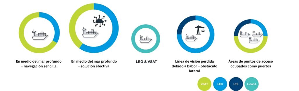 - Conectividad continua independientemente de la ubicación y los requisitos del buque, incluso en puntos de acceso